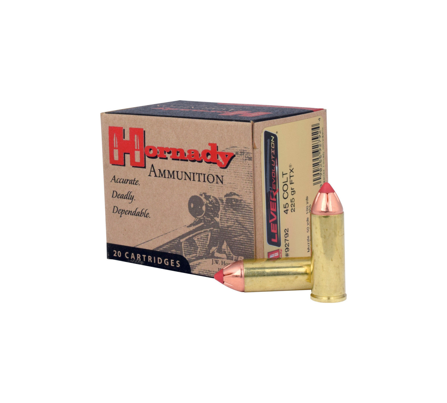 Description: Hornady LEVERevolution .45 Colt 225gr. FTX Ammunition 20 Rd. Box. LEVERevolution is the most exciting thing to ever happen to lever gun ammunition. Hornady, the leader in ballistic technology, brings you an innovation in ammunition performance featuring state-of-the-industry elastomer Flex Tip Technology that is SAFE in your tubular magazine. Its higher ballistic coefficient delivers dramatically flatter trajectories for fantastic downrange energy increases and amazing bullet expansion at all ranges. It truly is an evolution in lever gun ammunition.